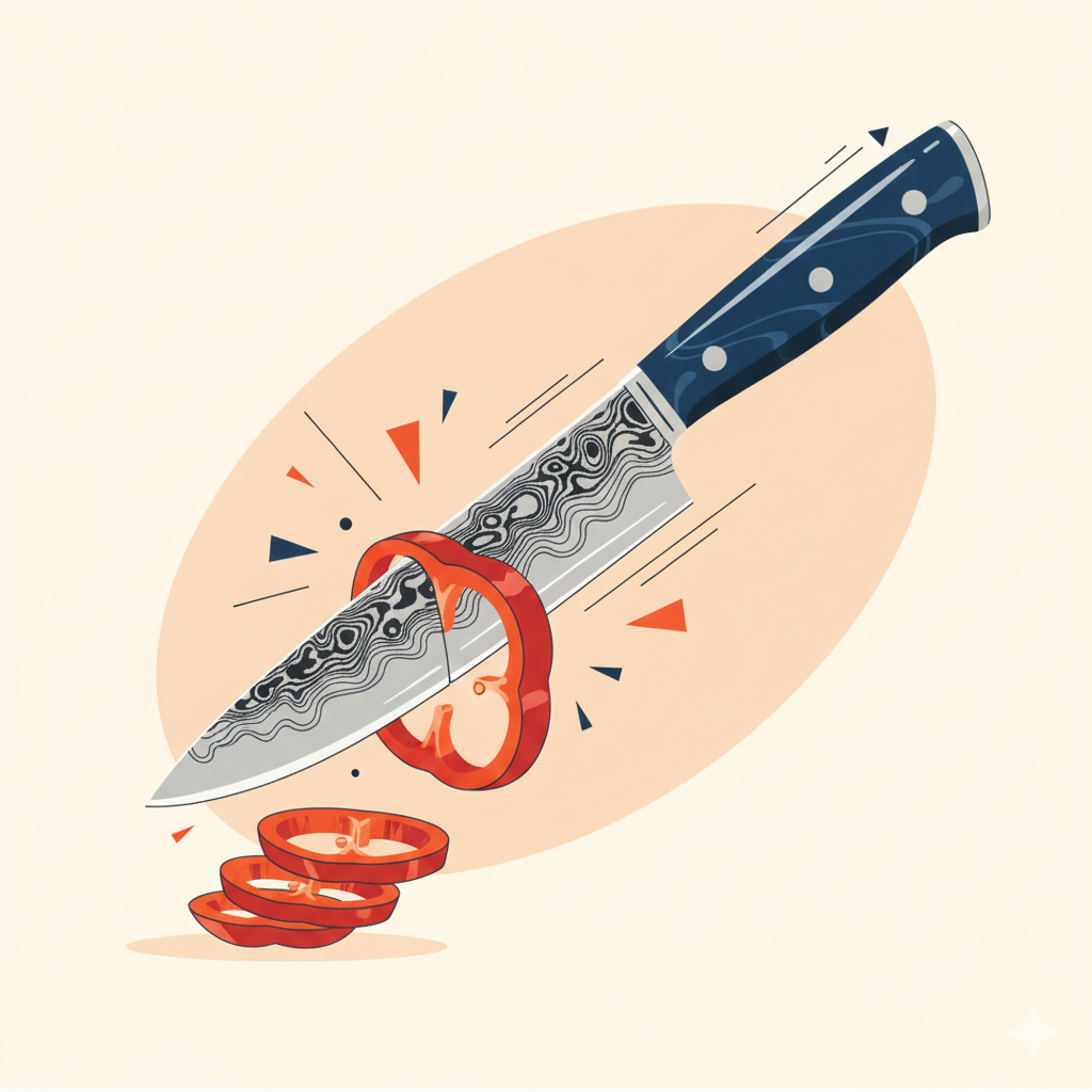 "Un tranchant extrême qui glisse dans les aliments et rend chaque préparation plus simple, plus agréable et plus précise."
